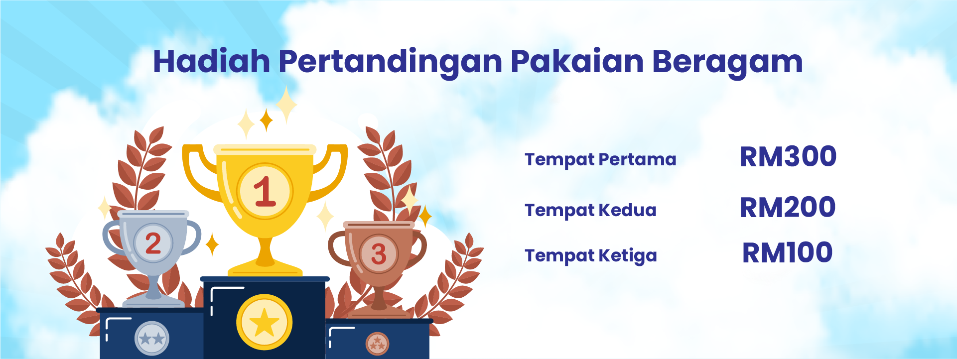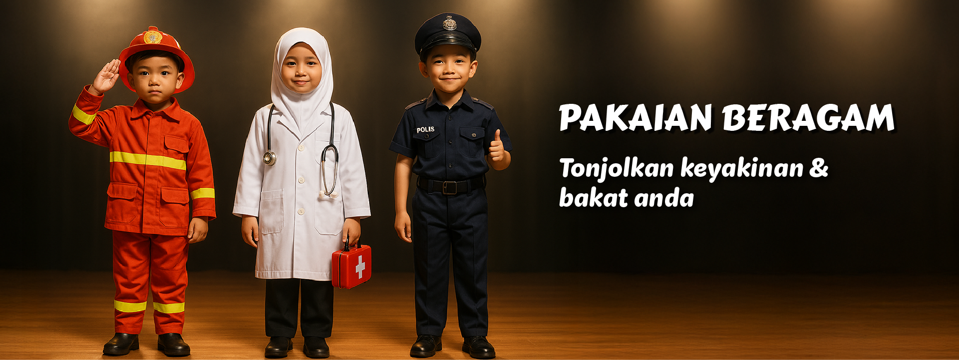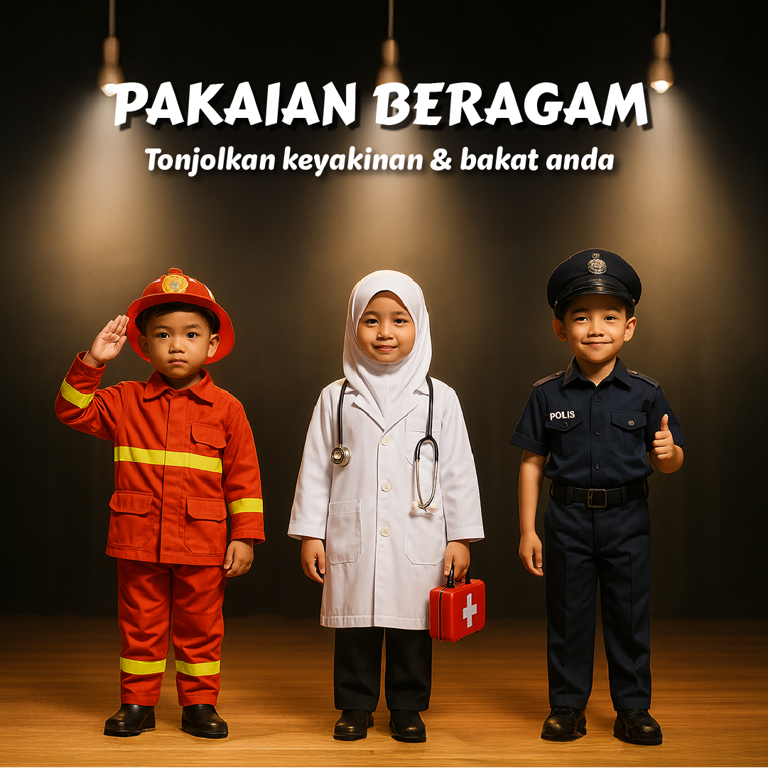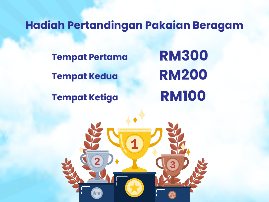 • Pakaian boleh dibuat sendiri atau disewa, asalkan kreatif dan sesuai tema.
