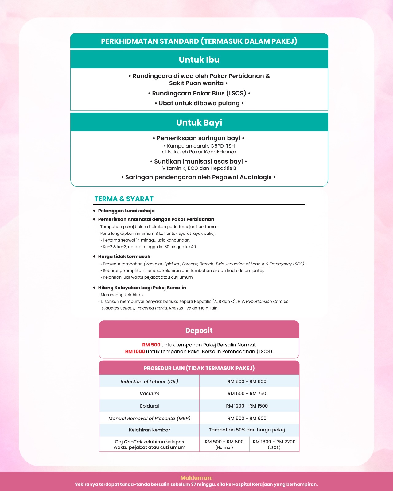 Pakej ini hadir dengan harga promosi, manfaat lengkap untuk ibu & bayi, serta hadiah percuma.